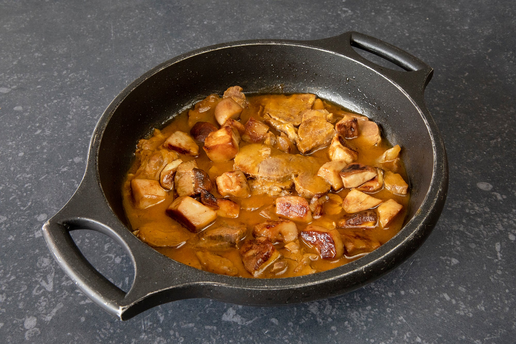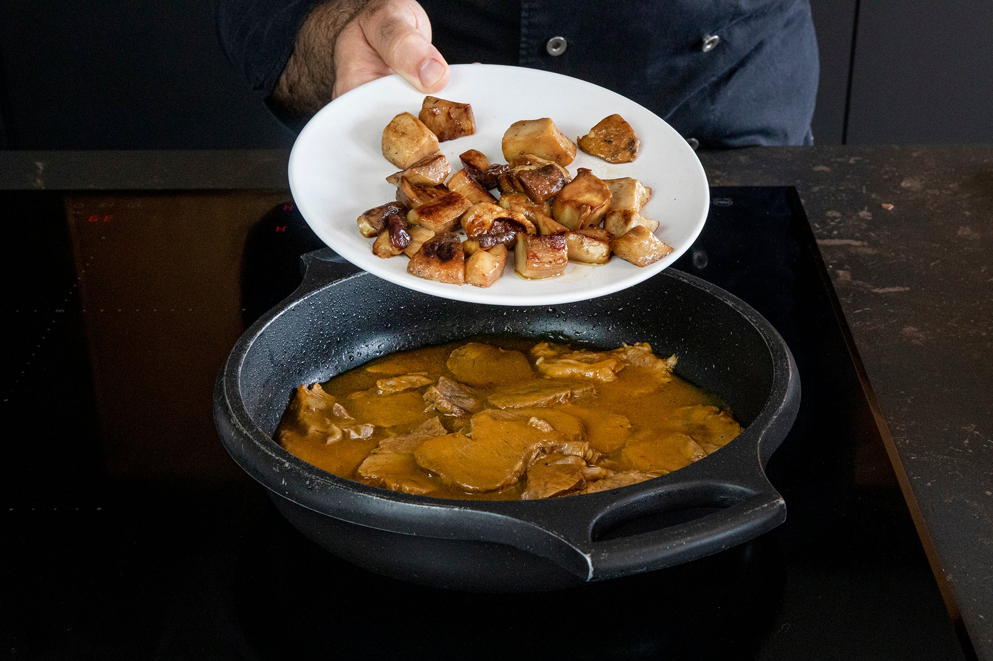 Ce plat classique de la cuisine mijotée révèle toute sa gourmandise grâce à l’ajout de champignons Laumont, ici des morceaux de boletus surgelés, qui renforcent la profondeur du goût. Le vin rancio vient apporter une touche subtilement sucrée et boisée, parfaite pour accompagner une viande tendre à souhait.