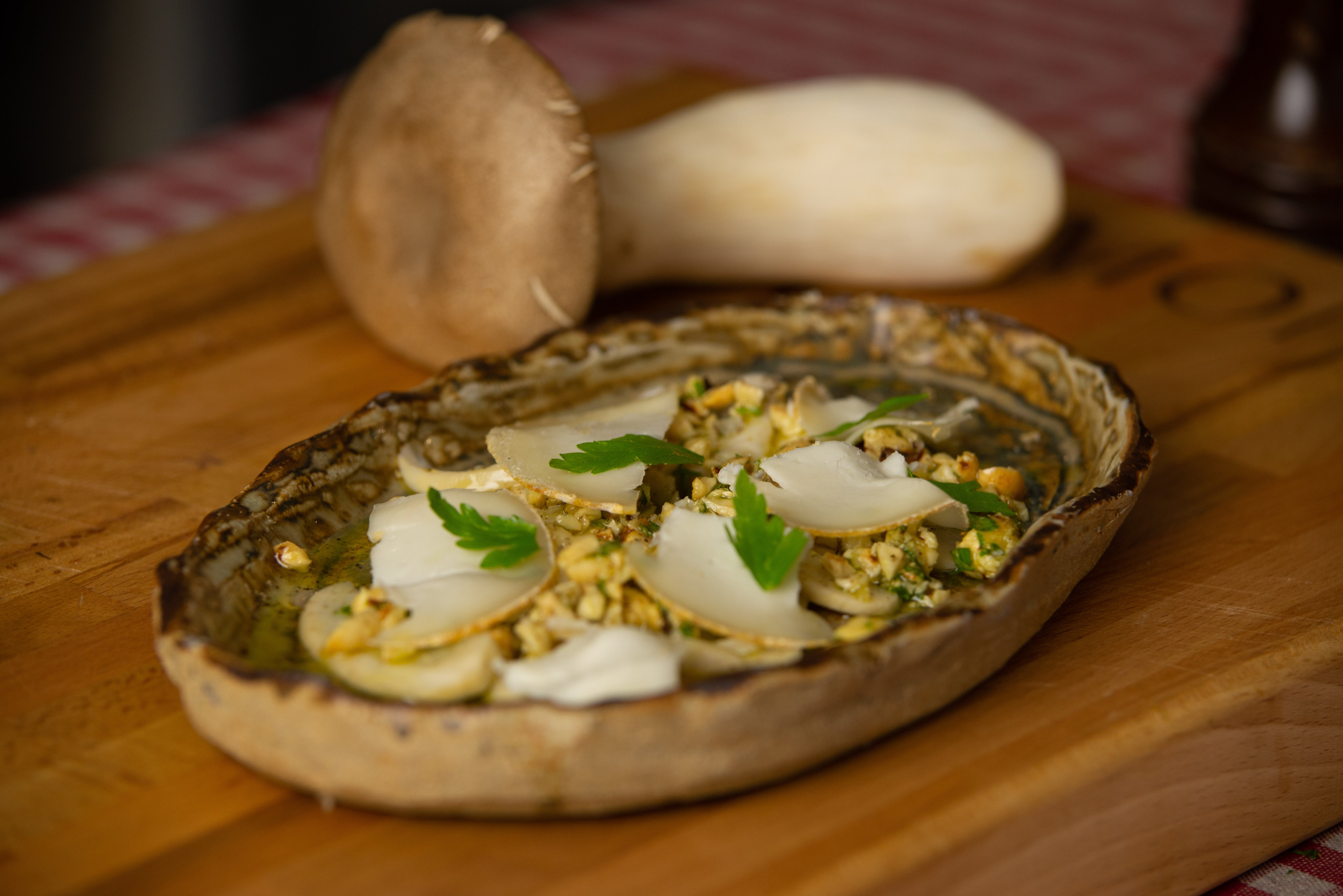 Ingrédients pour le carpaccio d’eryngii aux noisettes, persil et fromage de brebis