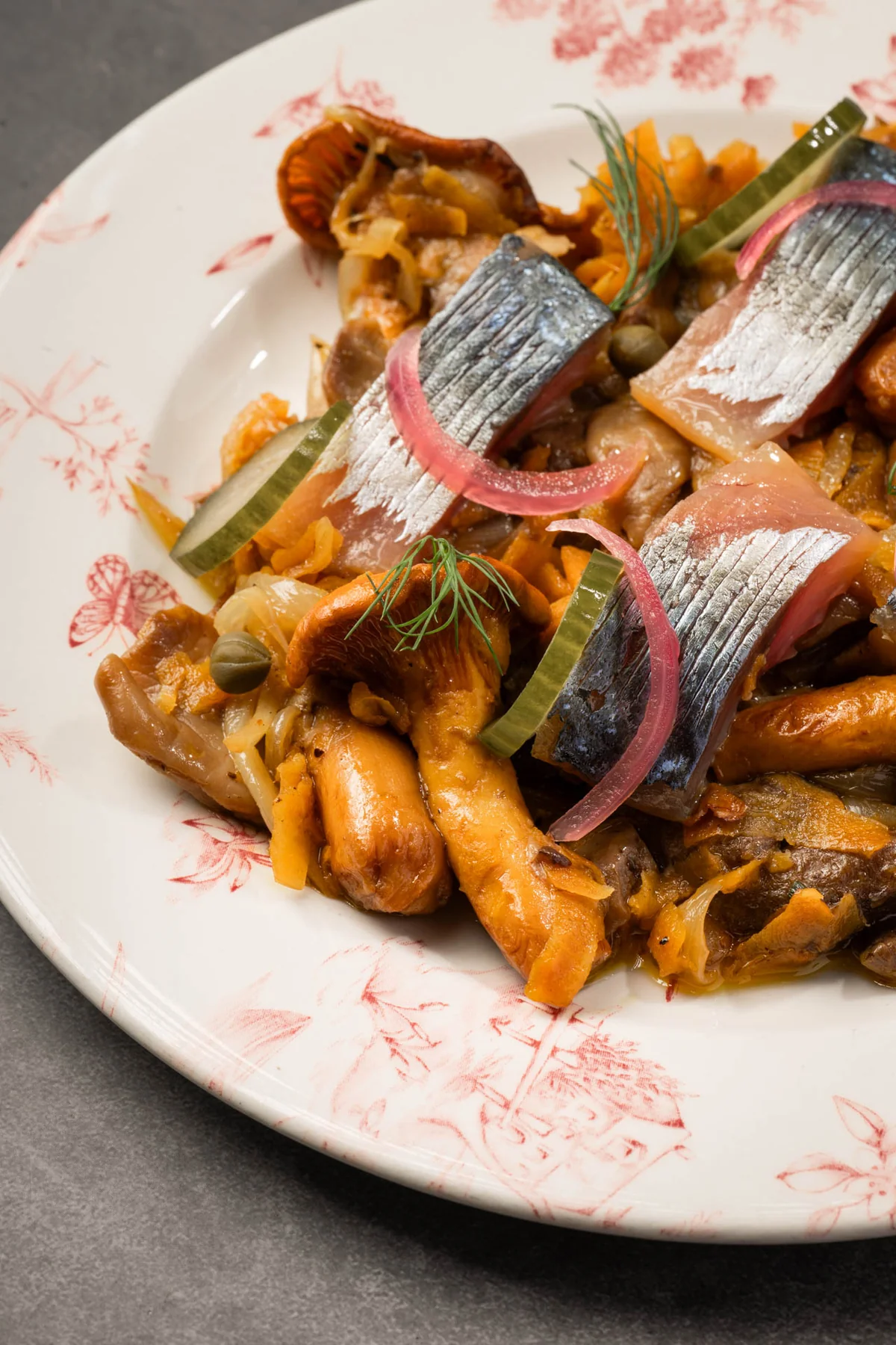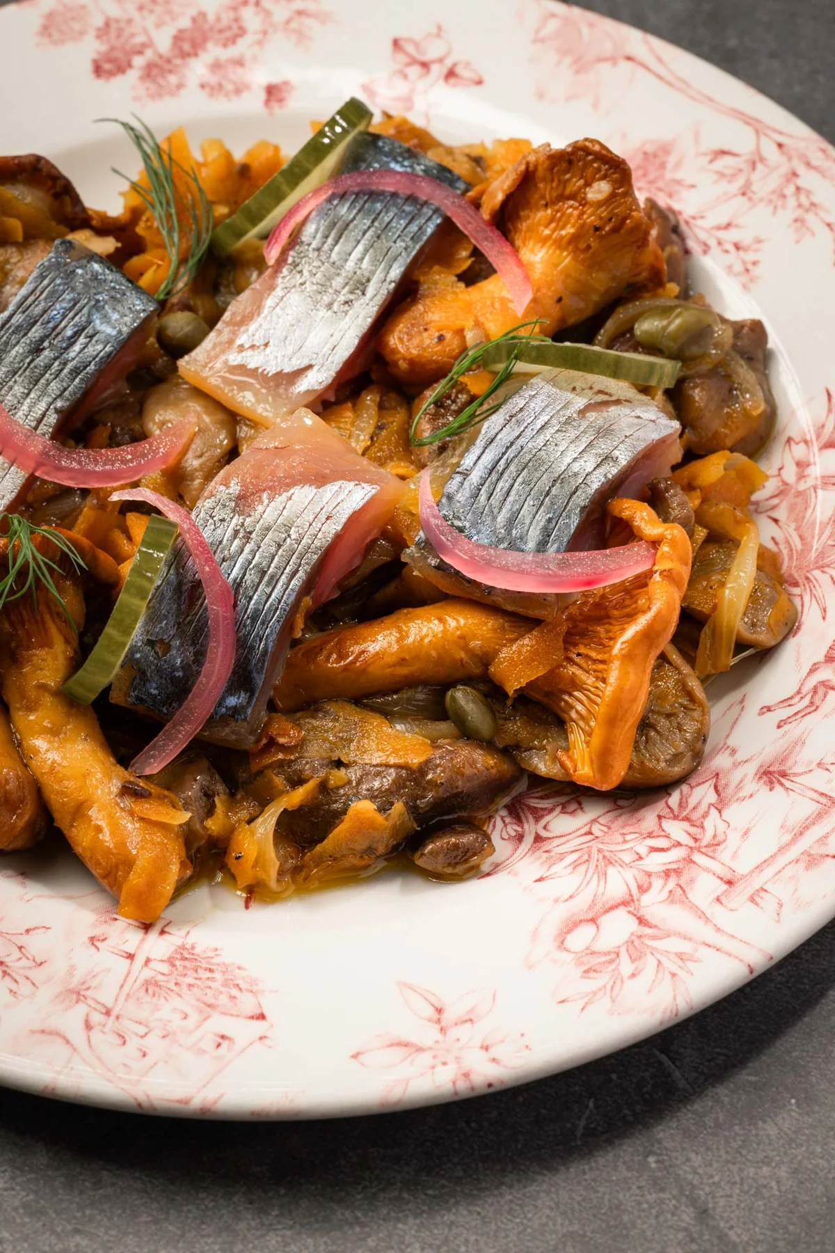 Une proposition fraîche et élégante qui combine la saveur profonde des champignons sauvages surgelés de Laumont avec la texture délicate du maquereau mariné au soja et aux agrumes. Les légumes confits en escabèche apportent douceur et équilibre, tandis que les pickles d'oignon rouge et de concombre ainsi que l'aneth frais ajoutent une touche aromatique et de couleur qui équilibre l'ensemble. Un plat léger et plein de nuances, parfait pour être servi froid ou tiède, où le produit sauvage est le véritable protagoniste.