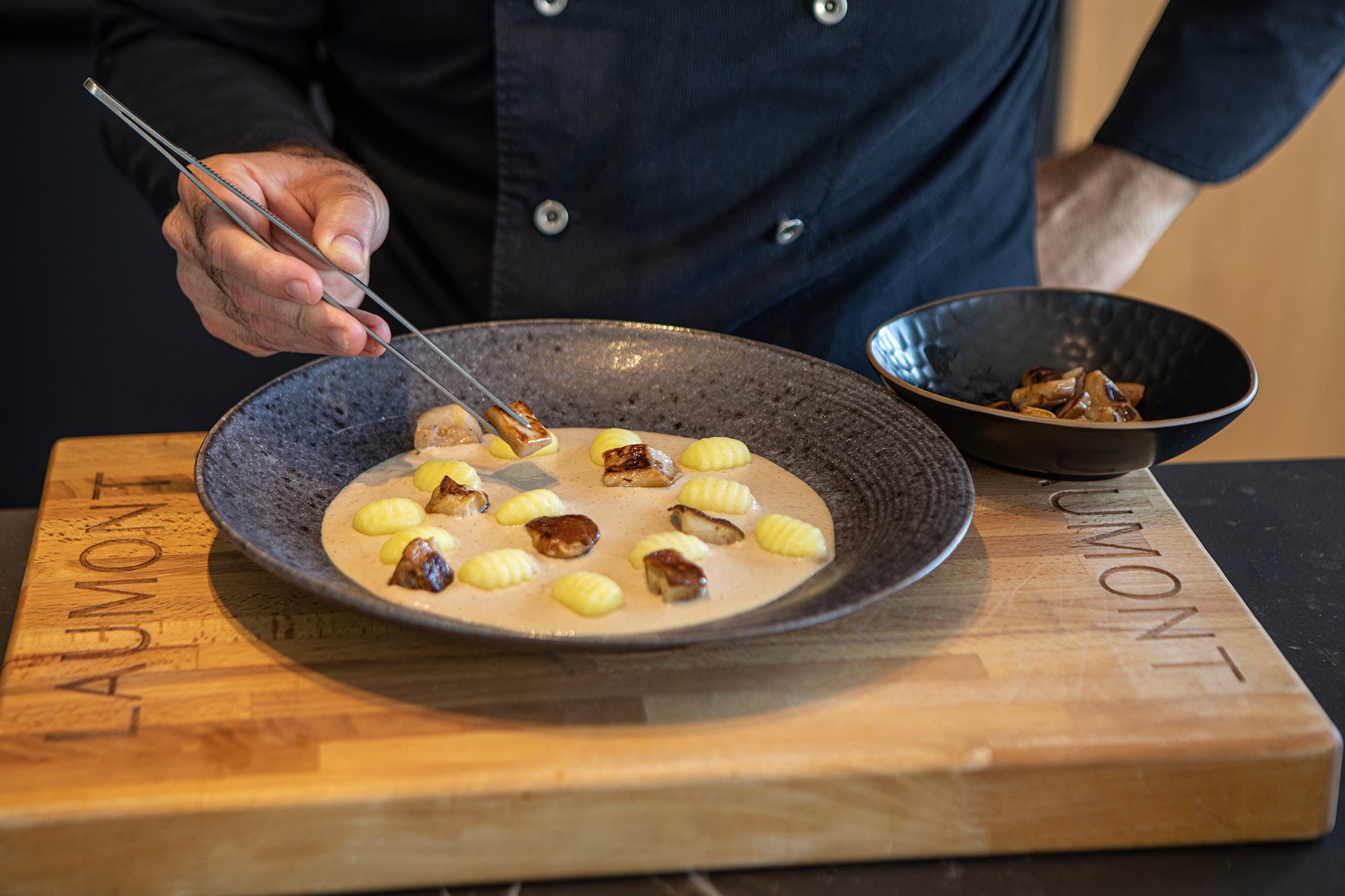 Cette recette chaleureuse associe la tendreté des gnocchis à une sauce onctueuse à base de crème et de cèpes Laumont. Un filet de brandy vient relever l’ensemble, tandis que quelques cèpes sautés et du parmesan râpé apportent la touche finale.