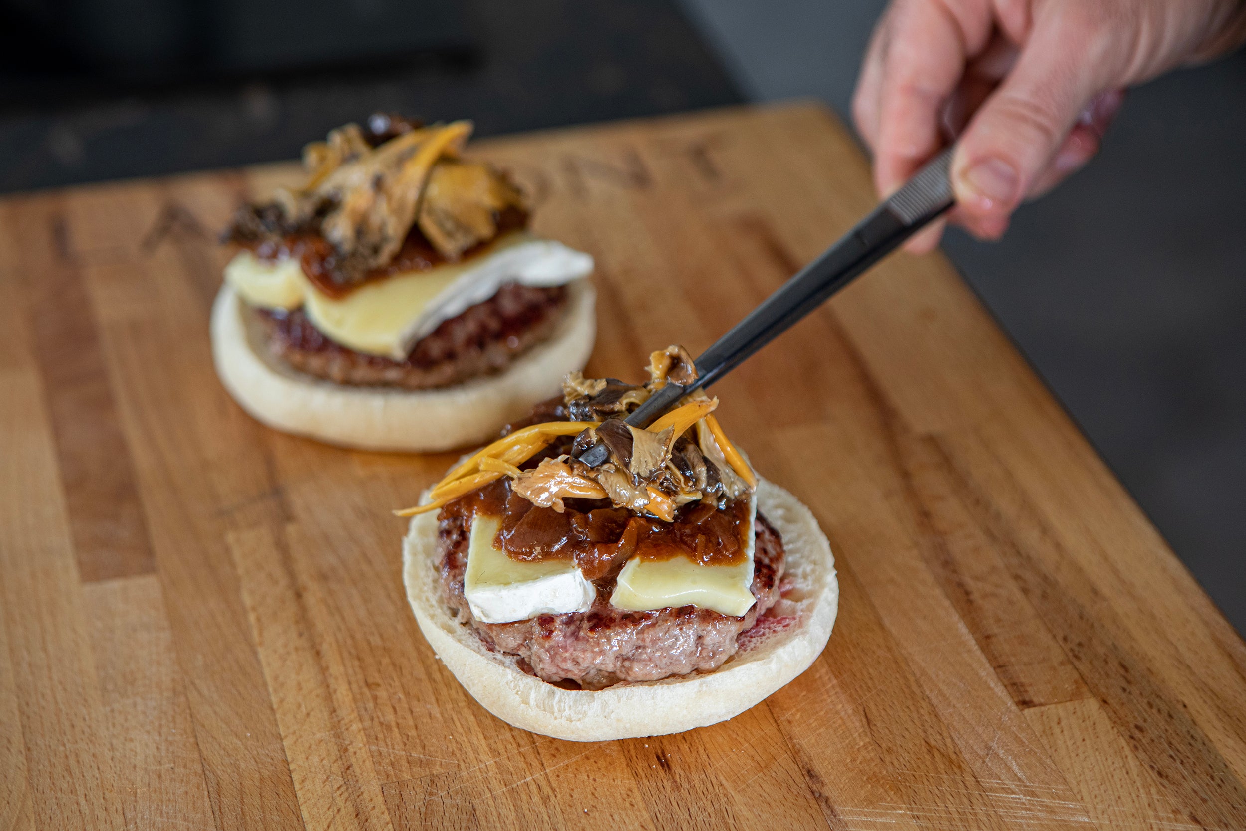 Le burger de bœuf au brie et aux girolles sauvages est une explosion de saveurs qui combine la jutosité de la viande de bœuf, la douceur fondante du brie et le goût intense des girolles sauvages Laumont. Chaque élément, du pain brioché à l’oignon caramélisé, est soigneusement choisi pour offrir un burger gourmand à l’âme forestière, parfait pour les amateurs de cuisine raffinée mais simple à réaliser.