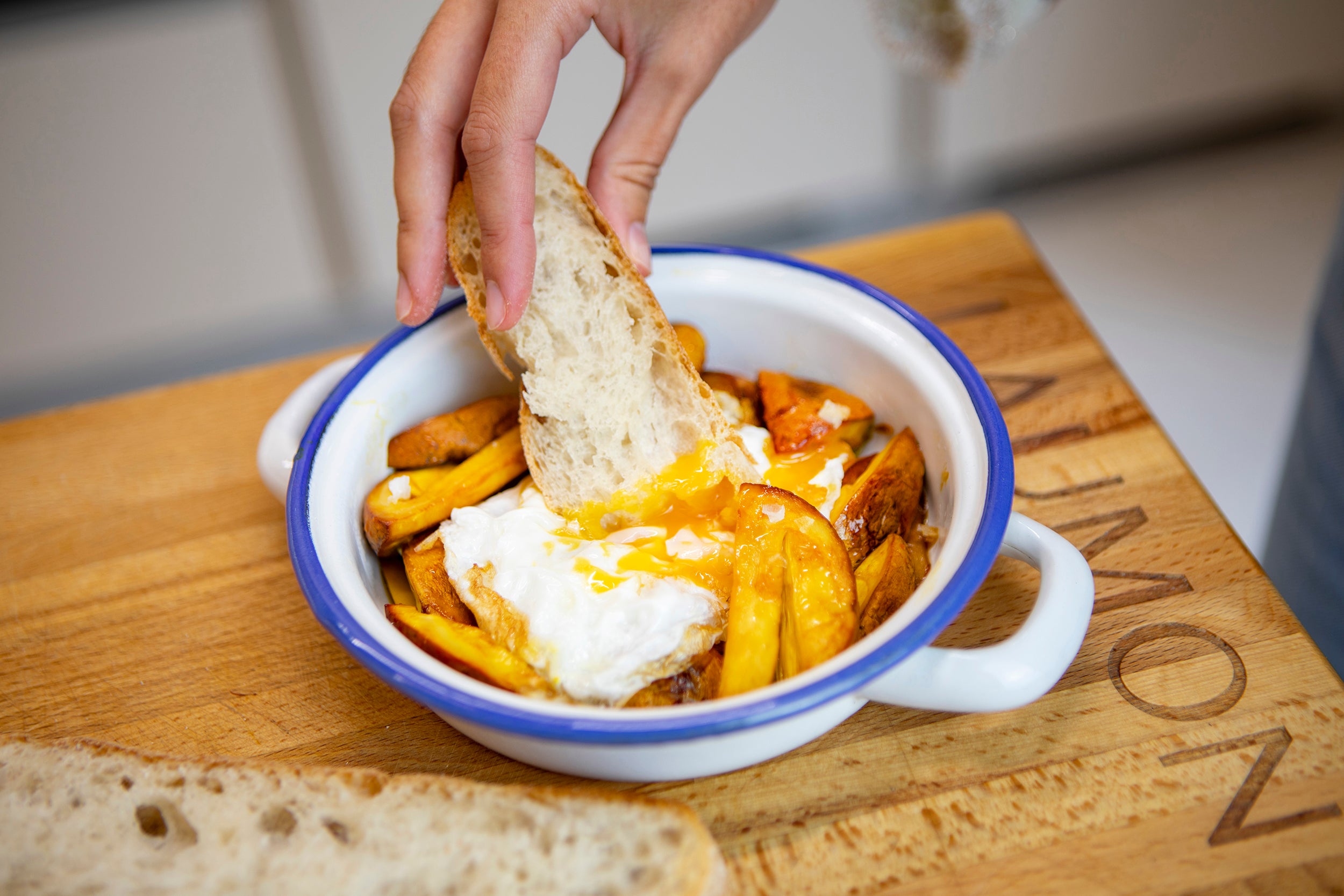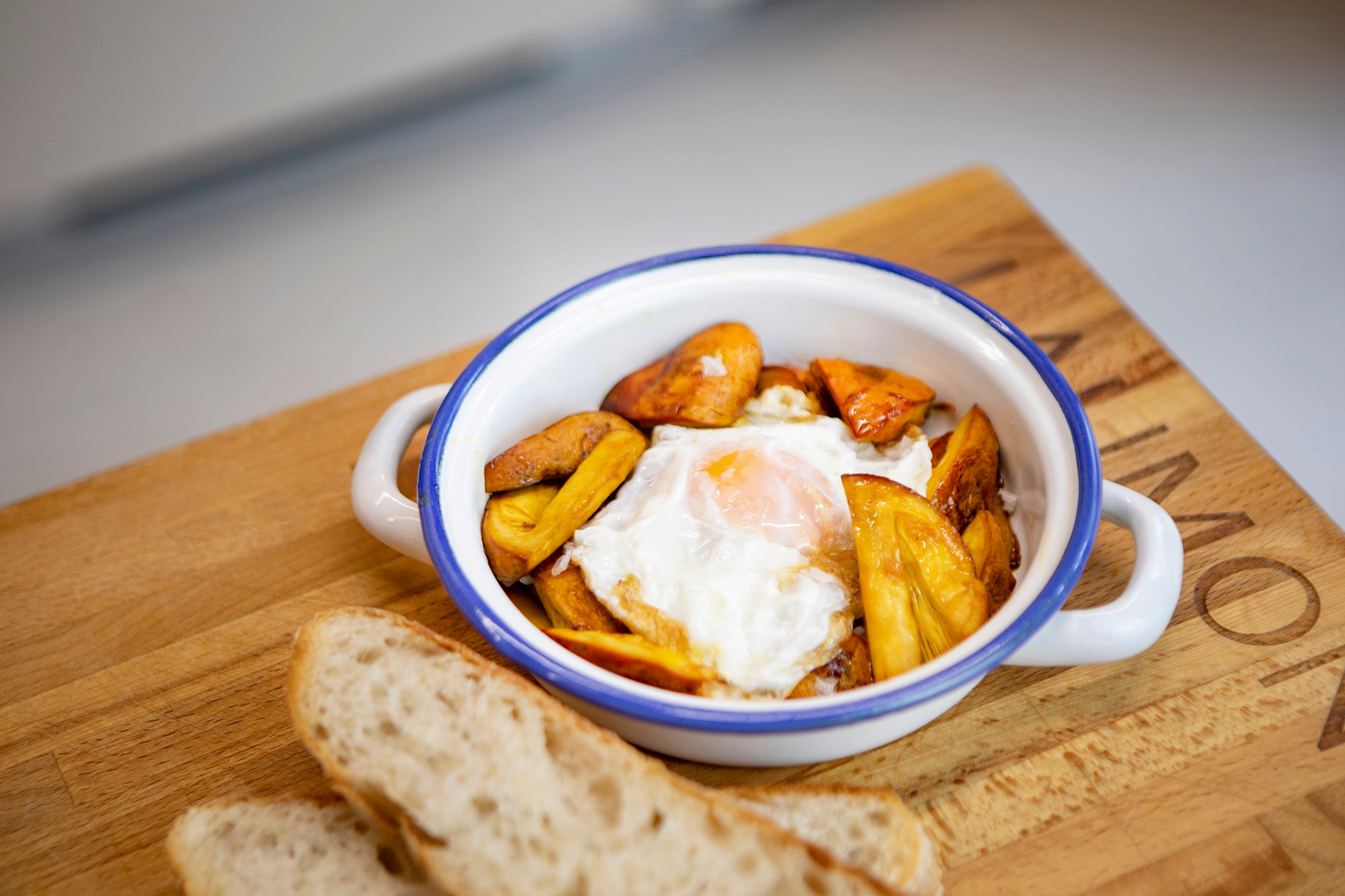 Quand la simplicité rencontre l’excellence : cette recette rend hommage à l’Amanite des Césars (Huevo del Rey), champignon noble proposé par Laumont. Associée à des œufs frits croustillants et un bon pain, elle devient un plat à la fois rustique et raffiné.