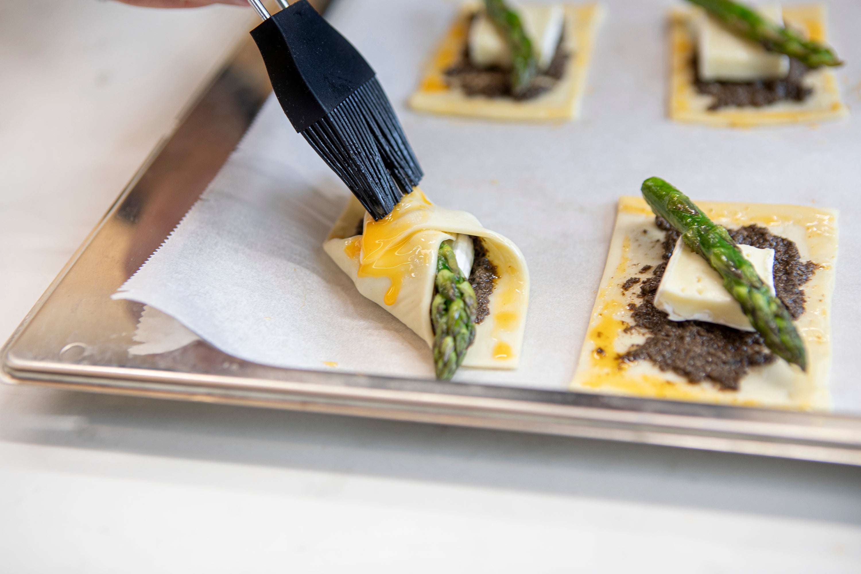 Cette entrée de pâte feuilletée avec olivade truffée, brie et asperges est une option délicieuse et élégante pour toute occasion. La combinaison de l’olivade truffée Laumont avec le fromage brie crémeux et les asperges dorées, le tout enveloppé dans une pâte feuilletée croustillante, offre une explosion de saveurs et de textures qui surprendra sûrement vos invités. Une recette facile à réaliser et pleine de saveurs !