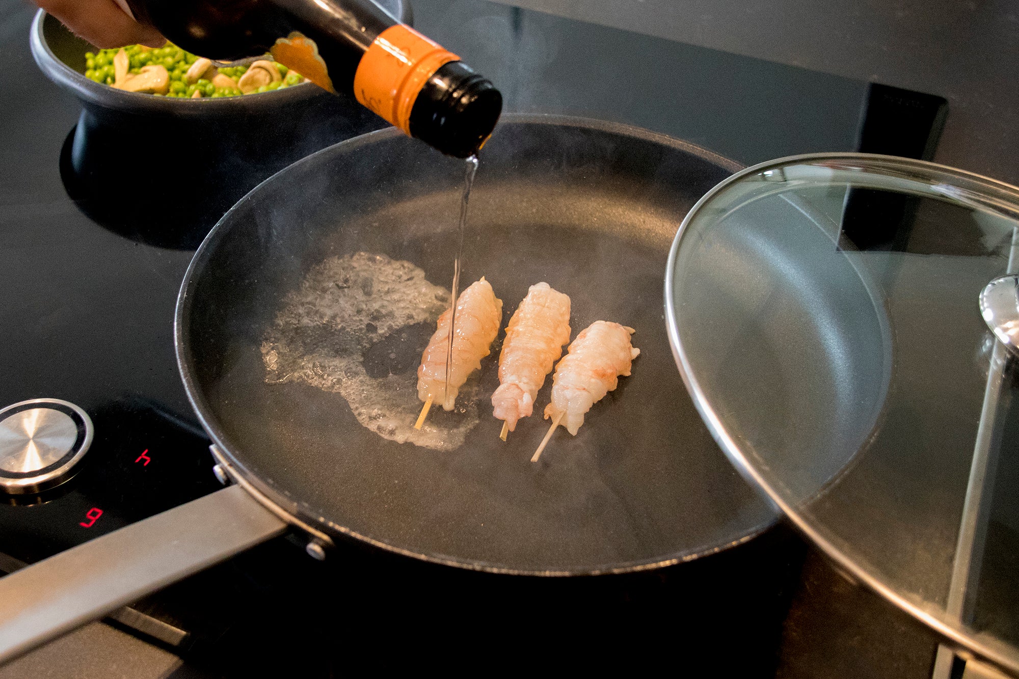 Ingrédients pour le petits pois aux mousserons et langoustines au vin de xérès