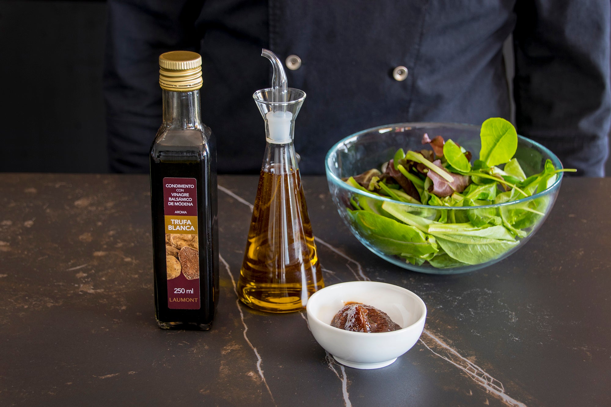 Ingrédients pour le salade de fromage de chèvre et vinaigre de truffe blanche