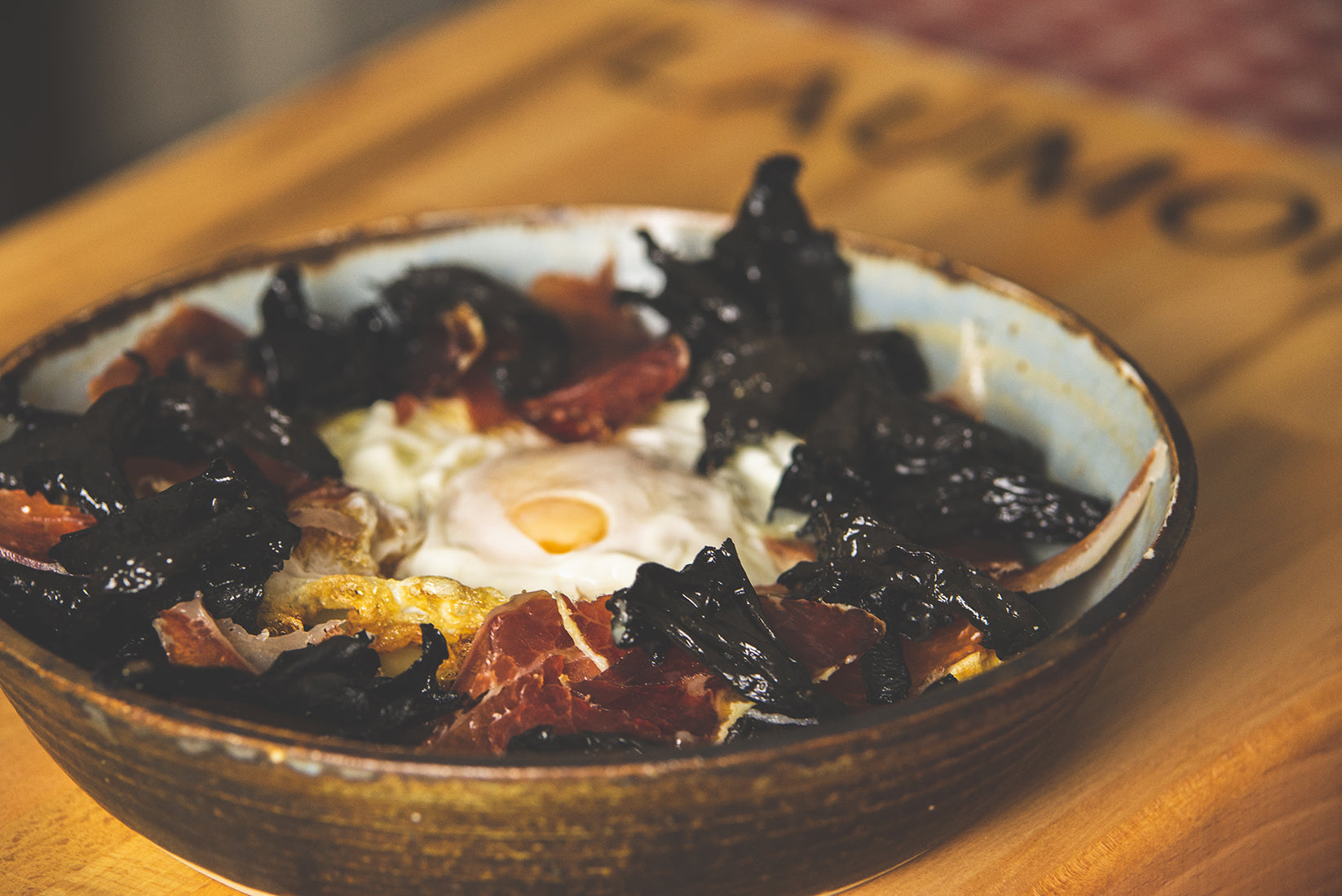 Un plat réconfortant aux accents d’automne, sublimé par la profondeur aromatique des trompettes de la mort Laumont. Alliance parfaite entre onctuosité, textures et saveurs puissantes, ce plat associe la finesse des champignons, le croustillant du jambon ibérique et la richesse d’un œuf frit posé sur une purée lisse et savoureuse. Un classique revisité aux accents forestiers.